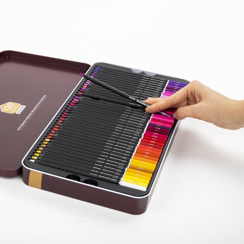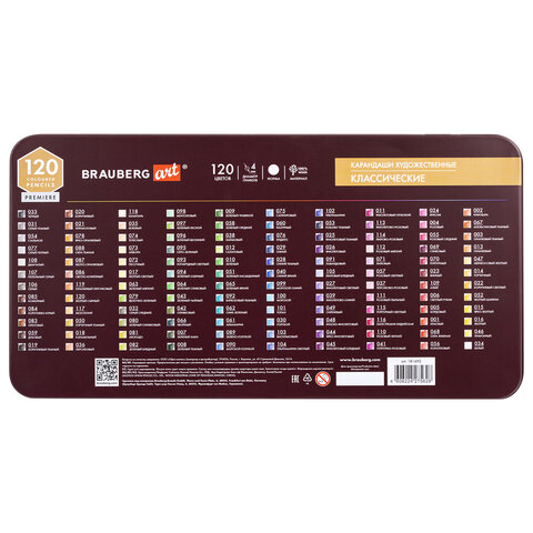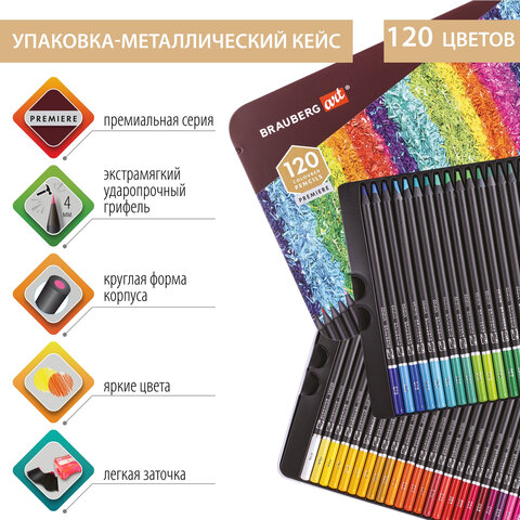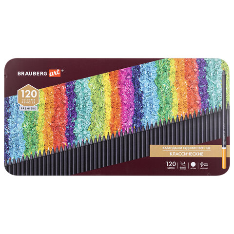 Карандаши художественные цветные BRAUBERG ART PREMIERE, НАБОР 120 цветов, 4 мм, металл кейс, 181692