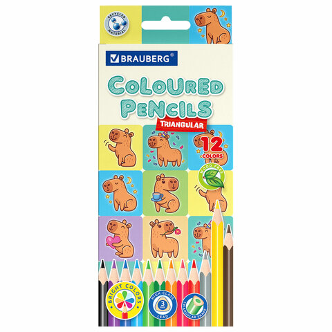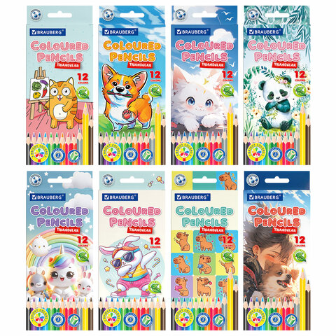 Карандаши цветные "АССОРТИ 8 ДИЗАЙНОВ 3-10 лет", 12 цветов, трехгранные, BRAUBERG, 182055