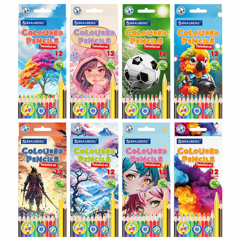 Карандаши цветные "АССОРТИ 8 ДИЗАЙНОВ 7-14 лет", 12 цветов, трехгранные, BRAUBERG, 182056