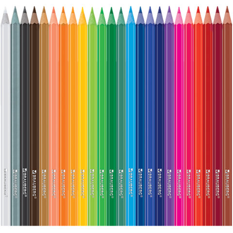 Карандаши цветные BRAUBERG, 24 цвета, цветной корпус, ПВХ-бокс, шестигранные, 182068