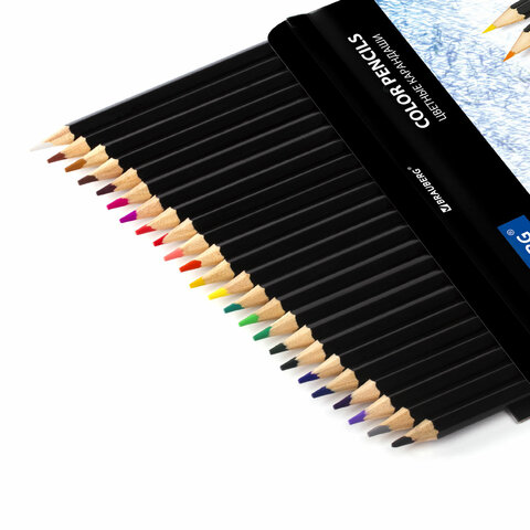 Карандаши цветные BRAUBERG "Artist line", 24 цвета, черный корпус, шестигранные, грифель 3 мм, натуральное дерево, 180565