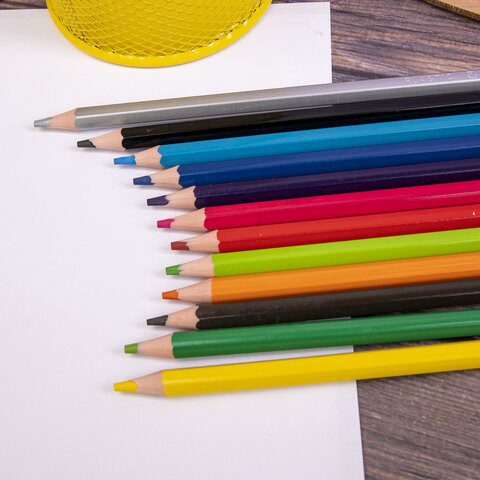 Карандаши цветные BRAUBERG PREMIUM, 12 цветов, шестигранные, грифель 3 мм, 181666