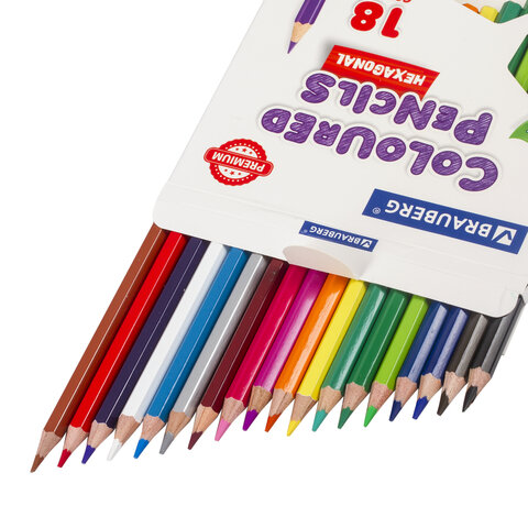 Карандаши цветные BRAUBERG PREMIUM, 18 цветов, шестигранные, грифель 3,3 мм, натуральное дерево, 181657