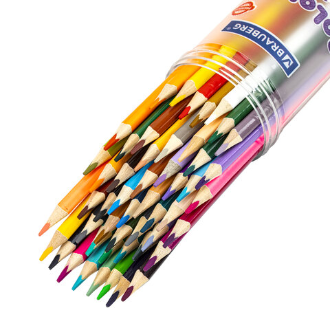 Карандаши цветные BRAUBERG PREMIUM 50 цветов в тубе, трехгранные, грифель 3,3 мм, натуральное дерево, 181935