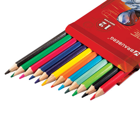 Карандаши цветные BRAUBERG "Star Patrol", 12 цветов, шестигранные, грифель 3 мм, натуральное дерево, 180532