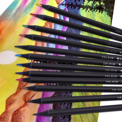 Карандаши цветные чёрное дерево BRAUBERG BLACK WOOD, 12 цветов, трехгранные, мягкий грифель 3 мм, 181948