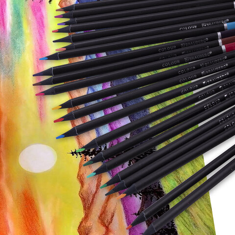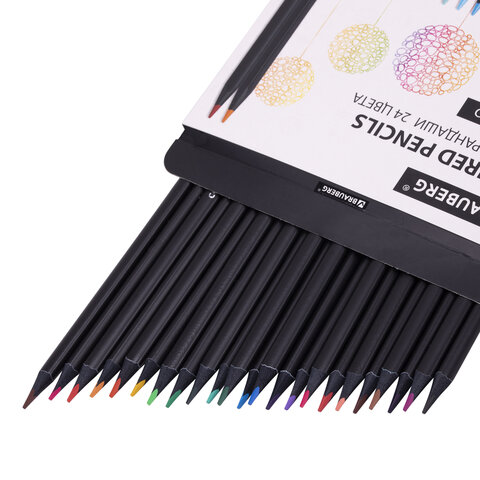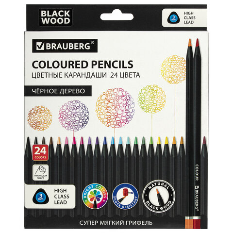 Карандаши цветные чёрное дерево BRAUBERG BLACK WOOD, 24 цвета, трехгранные, мягкий грифель 3 мм, 181949