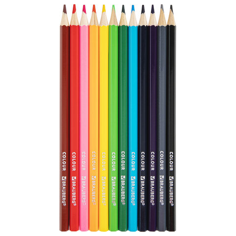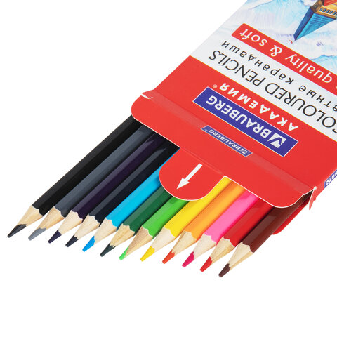 Карандаши цветные мягкие BRAUBERG АКАДЕМИЯ, 12 цветов, шестигранные, грифель 3 мм, натуральное дерево, 181864