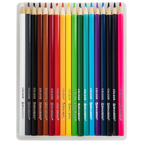 Карандаши цветные мягкие BRAUBERG АКАДЕМИЯ, 18 цветов, шестигранные, грифель 3 мм, натуральное дерево, 181865