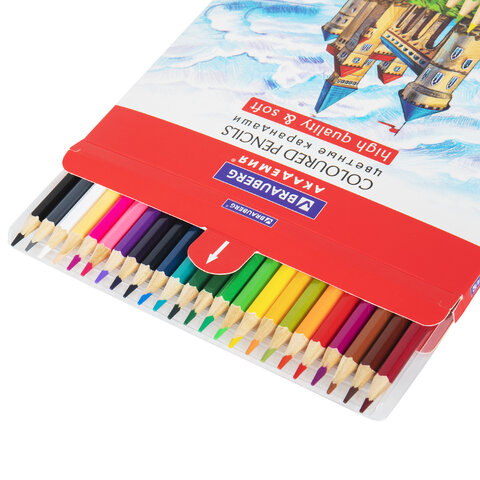 Карандаши цветные мягкие BRAUBERG АКАДЕМИЯ, 24 цвета, шестигранные, грифель 3 мм, натуральное дерево, 181866