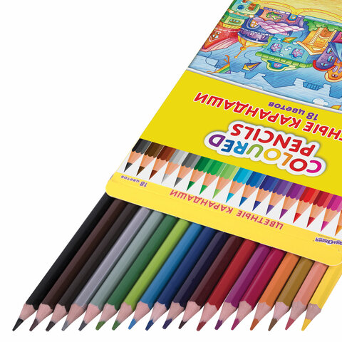 Карандаши цветные ЮНЛАНДИЯ "ДОМИКИ", 18 цветов, шестигранные, грифель 3 мм, 181837