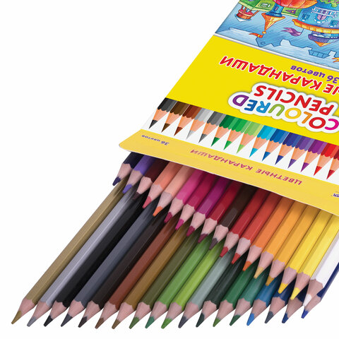 Карандаши цветные ЮНЛАНДИЯ "ДОМИКИ", 36 цветов, шестигранные, грифель 3 мм, 181839