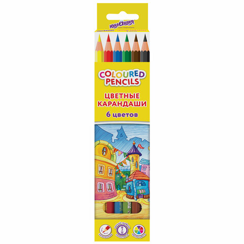 Карандаши цветные ЮНЛАНДИЯ "ДОМИКИ", 6 цветов, шестигранные, грифель 3 мм, 181835