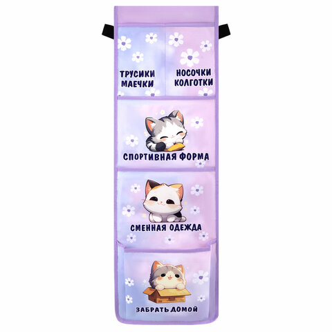 Кармашки-органайзер в шкафчик для детского сада ЮНЛАНДИЯ, увеличенный размер, 26х80 см, "Sleepy kitty", 273281