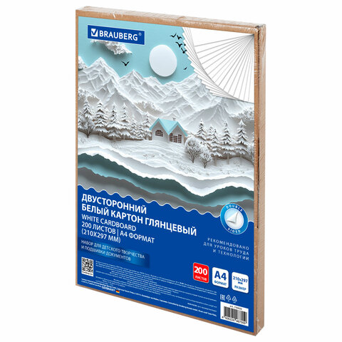 Картон белый А4 МЕЛОВАННЫЙ (белый оборот) 200 листов, в коробе, BRAUBERG, 210х297 мм, 116632