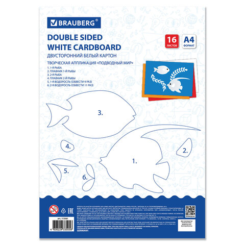 Набор белого картона BRAUBERG предназначен для творчества и хобби, рекомендован для уроков труда и технологии. Может использоваться детьми с трехлетнего возраста.