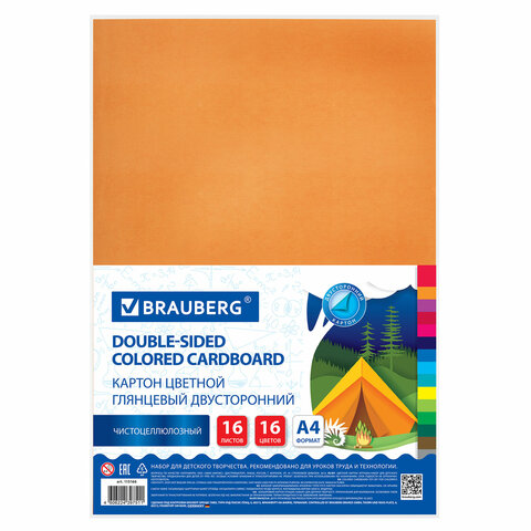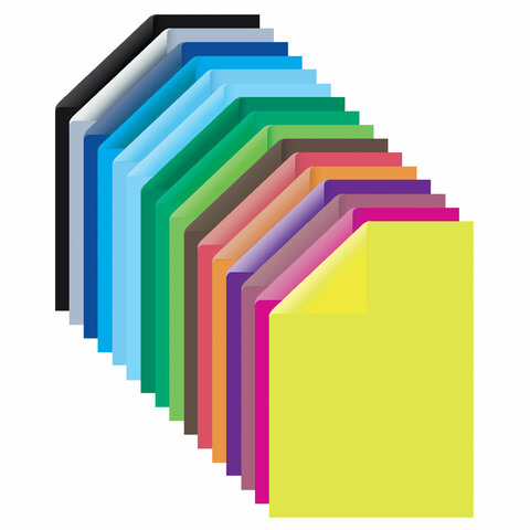 Картон цветной А4 2-сторонний МЕЛОВАННЫЙ, 16 листов, 16 цветов, BRAUBERG, 200х290 мм, 115166
