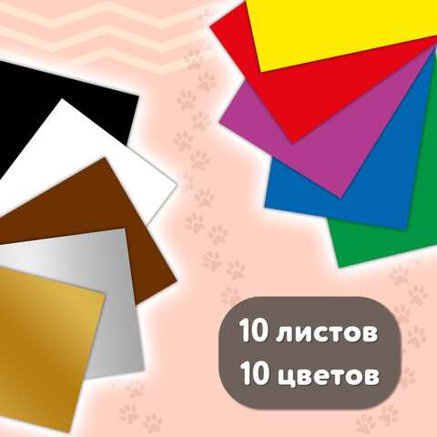 Картон цветной А4 МЕЛОВАННЫЙ ВОЛШЕБНЫЙ 10 листов, 10 цветов, кросс-серия "МИЛЫЕ КОТЫ", 200х290 мм, BRAUBERG, 116982