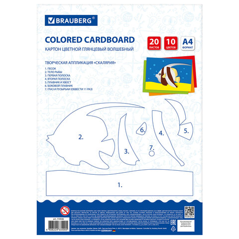 Набор цветного картона BRAUBERG предназначен для творчества и хобби и может использоваться детьми с трехлетнего возраста. Картон рекомендован для уроков труда и технологии. Творческая инструкция по созданию аппликации на обороте.