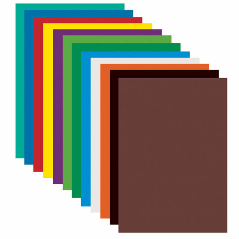Картон цветной А4 немелованный (матовый), 12 листов 12 цветов, ПИФАГОР, 200х283 мм, 128011