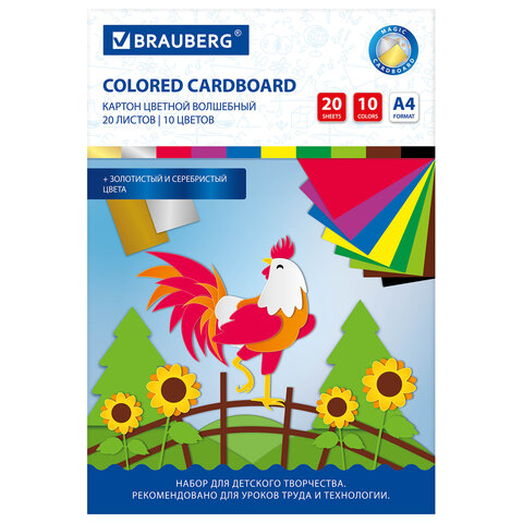 Набор цветного картона BRAUBERG предназначен для творчества и хобби и может использоваться с трехлетнего возраста. Рекомендован для уроков труда и технологии.