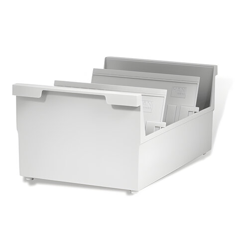 Горизонтальная открытая перекидная картотека с высокими бортиками подойдет для систематизации и хранения карточек.