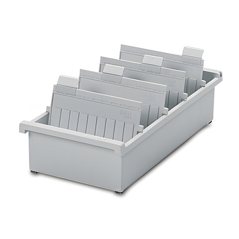 Картотека пластиковая ФОРМАТ А5 (210х148 мм) горизонтальная на 1300 карт, серая, HAN (Германия), НА955/0/11