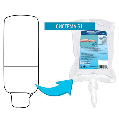 Картридж с жидким крем-мылом одноразовый (Система S1) "Перламутровое", белое, 1 л, KEMAN, 100024-S1000