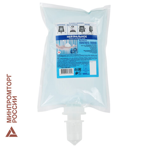 Картридж с жидким мылом-пеной одноразовый (Система S4), "Нейтральное", синее, 1 л, KEMAN, 100105-1000