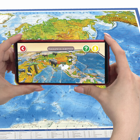 Карта мира физическая 101х66 см, 1:29М, с ламинацией, интерактивная, в тубусе, BRAUBERG, 112378