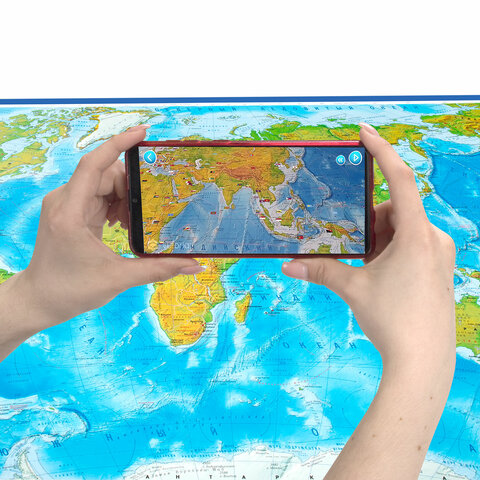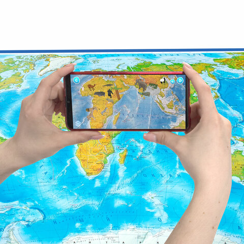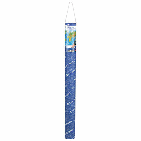 Карта мира физическая 157х107 см, 1:21,5М, с ламинацией, интерактивная, в тубусе, BRAUBERG, 112388