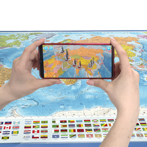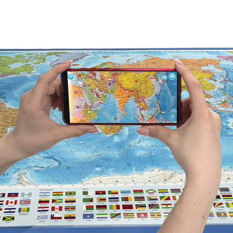 Карта мира политическая 157х107 см, 1:21,5М, с ламинацией, интерактивная, в тубусе, BRAUBERG, 112390