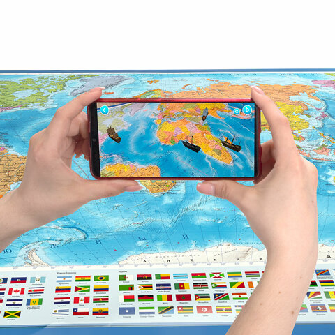 На политической карте мира BRAUBERG отображается современное политико-административное устройство мира: названия государств и их столицы, крупнейшие города и границы стран. Ниже расположены государственные флаги.
