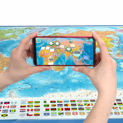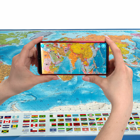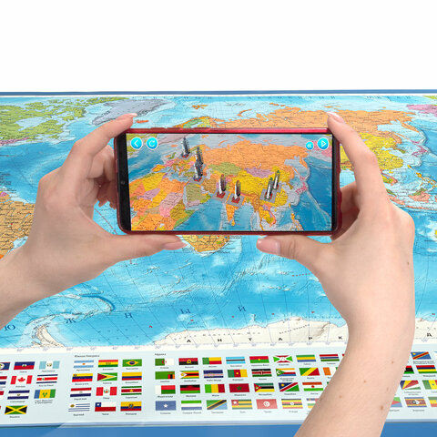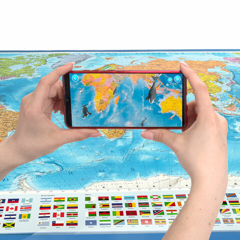 Карта мира политическая 199х134 см, 1:15,5М, с ламинацией, интерактивная, европодвес, BRAUBERG, 112387