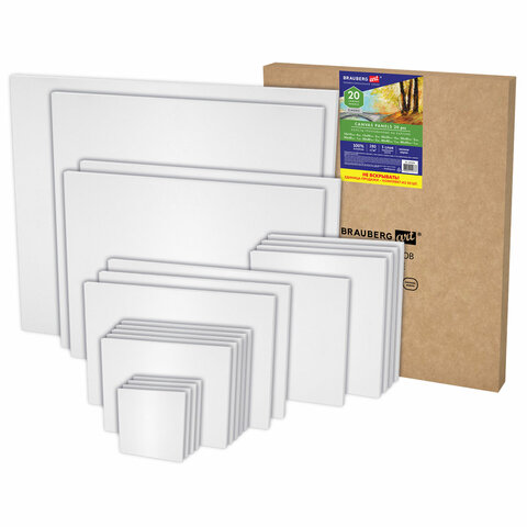 Холсты на картоне НАБОР 20 штук, 280 г/м2, грунт, 100% хлопок, BRAUBERG ART CLASSIC, 192431