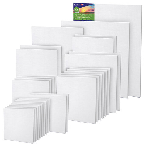 Холсты на картоне НАБОР 30 штук в коробе, хлопок, грунт, 280 г/м2, BRAUBERG ART CLASSIC, 192663