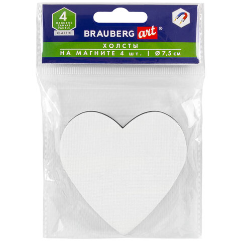 Холсты на магните в форме сердца НАБОР 4 шт., 7,5 см, 280 г/м2, 100% хлопок, BRAUBERG ART CLASSIC, 192334