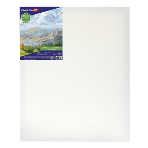Холст на подрамнике BRAUBERG ART CLASSIC, 50х60 см, 420 г/м2, 45% хлопок 55% лен, среднее зерно, 191659