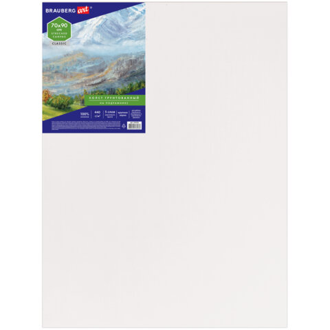 Холст на подрамнике BRAUBERG ART CLASSIC, 70х90 см, 440 г/м2, грунт, 100% хлопок, крупное зерно, 191026