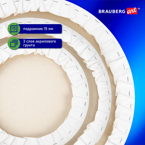 Холсты на подрамнике 3 шт., круглые 20, 30, 40 см, грунтованные, 380 г/м2, 100% хлопок, BRAUBERG ART, 192330