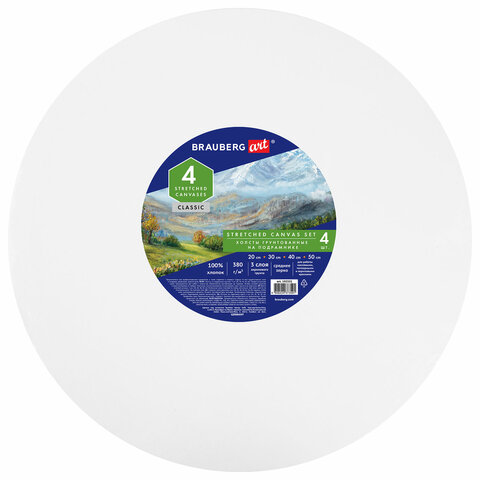 Холсты на подрамнике 4 шт., круглые 20, 30, 40, 50 см, грунтованные, 380 г/м2, 100% хлопок, BRAUBERG ART, 192331