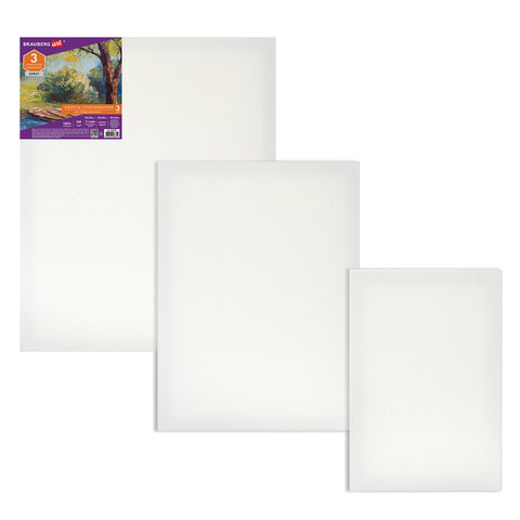 Холсты на подрамнике BRAUBERG ART DEBUT, НАБОР 3 шт., 280 г/м2, грунт, 100% хлопок, мелкое зерно, 191649