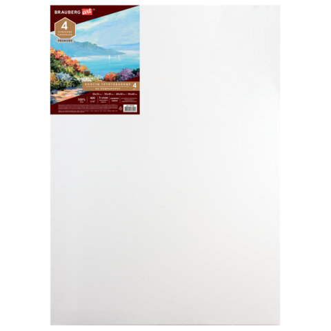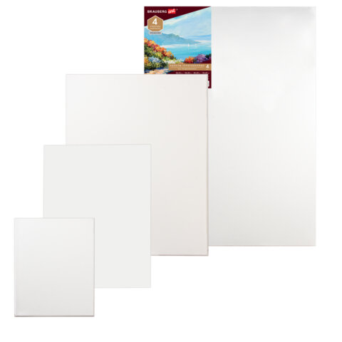 Холсты на подрамнике BRAUBERG ART PREMIERE, НАБОР 4шт, грунтованные, 100% лен, среднее зерно, 191029