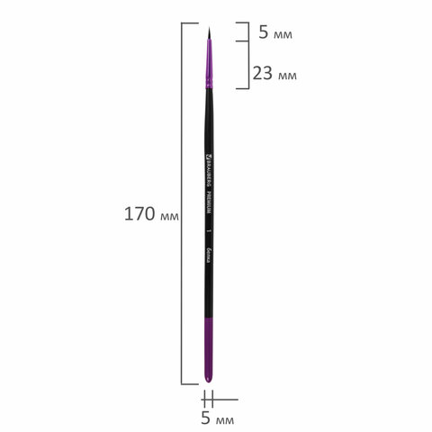 Кисть белка, круглая № 1, BRAUBERG PREMIUM, 200970