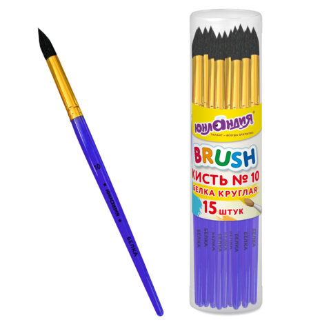 Кисть БЕЛКА, круглая, № 10, цветная ручка, ЮНЛАНДИЯ, 201059