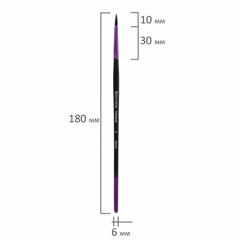 Кисть белка, круглая № 3, BRAUBERG PREMIUM, 200972
