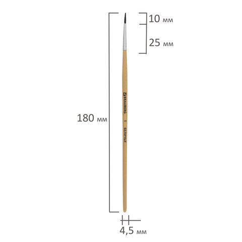 Кисть BRAUBERG, белка, круглая, № 1, 200178
