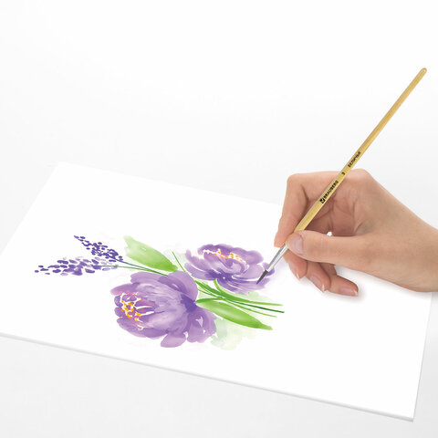 Кисть BRAUBERG № 3 подходит для работы с акварелью, гуашью, тушью, а также для прорисовывания различных деталей рисунка. Снабжена защитным пластиковым колпачком.