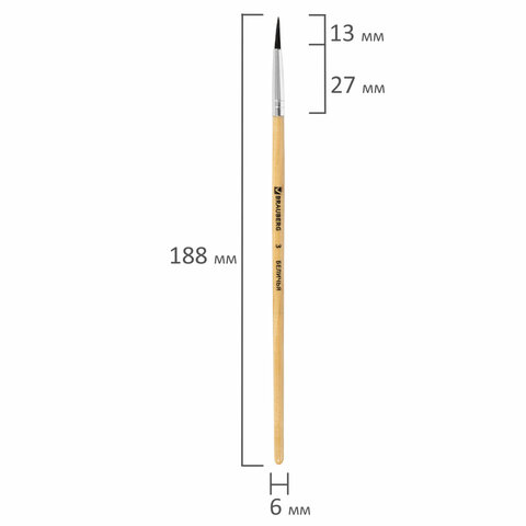 Кисть BRAUBERG, белка, круглая, №3, 200180