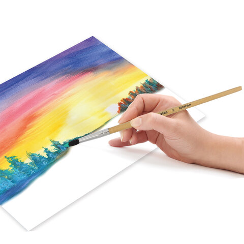 Кисть BRAUBERG № 5 подходит для работы с акварелью, гуашью, тушью, а также для прорисовывания различных деталей рисунка. Снабжена защитным пластиковым колпачком.